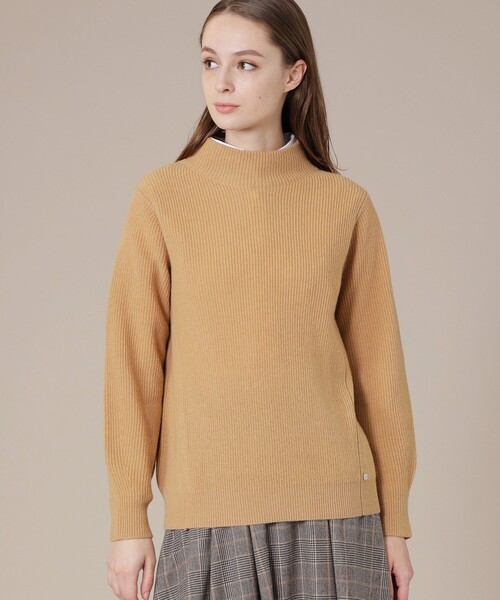 【着用推奨シーズン:秋・冬】 <素材説明> 細番手のウールとカシミヤをブレンドした素材です。肌触り良く、ミドルゲージで編み立てることでシルエットがきれいです。 <デザインポイント> 衿は身頃からの編み続きのボトルネックニットプルオーバーです。袖は立体感を出し、マトンスリーブの様な仕上がりです。身頃脇に入れたラインでシルエットを立体的に見せています。 ※ドライオンリー モデル:H176 B82 W57 H89 着用サイズ:38