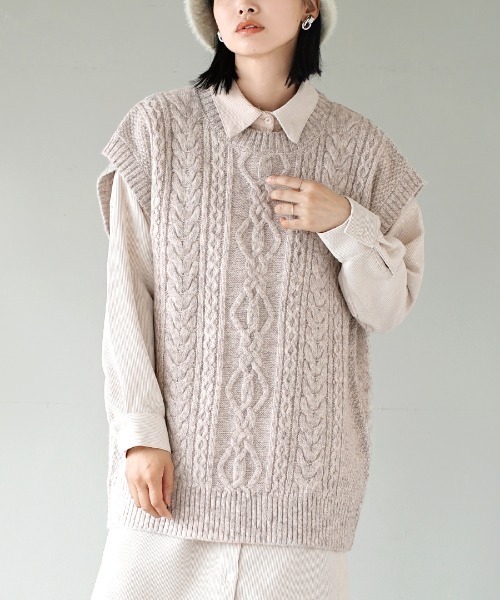 素材・カラー・シルエット、そして着心地にこだわってつくる「大人が着たくなるカジュアル」を apartment department(アパートメントデパートメント)からお届けします。 素材 ウール混の素材を用い編まれたニットベストです。 メランジ調の風合いとウールの風合いが見た目にもあたたかで、軽くやわらかな着心地が特徴の素材を使用しています。 デザイン メランジ調の糸で編まれた立体的な編地は、シンプルながらもコーディネートのポイントになってくれます。 ゆとりのある身幅と大きめのアームホールデザインなので、少しゆったりとしたシャツやカットソーとのレイヤードスタイリングも着るだけで完成。 長めの着丈は、あたたかさだけでなくゆるっとした大人なカジュアルを簡単に作ってくれます。少し詰まったクルーネックのデザインとゆったりしたシルエットが今年らしいワイドベストです。 コーディネート 落ち感のある大人な素材感のフレアスカートに合わせていただくと、カジュアルダウンアイテムに。 綿素材やデニム素材のボトムと合わせると、少しナチュラル感をプラスしてくれるアイテムとして着ていただけます。 いつものコーディネートに寄り添ってくれる、シンプルであたたかなニットベスト。ワードローブに加えやすいニットアイテムです。 洗濯:ドライクリーニング石油系溶剤による弱いドライクリーニングができます