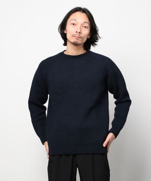 新潟県見附市の高い技術のニット織物を使ったシリーズの定番 【素材】 北欧のセーターを彷彿させる、肉厚でハリのある上質なニットになっています。着丈や肩幅、身幅などをゆったりとさせることでクラシックな印象に。 【デザイン】 ラグランスリーブの縫製によってより強く、ワンシーズンしっかりと着ても毛玉や伸びができにくいのが特徴です。生地にハリがあるため、シルエットがとても綺麗。どんなボトムと合わせても綺麗で上品にまとめてくれます。 *********************** 透け感:なし 伸縮性:あり 光沢感:なし 生地の厚さ:普通 裏地:なし *********************** 【EEL <Easy Earl Life>Products】 普遍的で特別な一着を目指し、ブランドアイデンティティを探求する事をコンセプトに2003AWスタート。EELとは"Easy Earl Life"の略語であり、直訳すると「気楽な伯爵の生活」を意味します。2人の男性デザイナーの独特な視点から生み出されるEELの服は、素材やディテールに対しての真剣な姿勢と、どこかユーモアに富んだ適度な「ヌケ感」を感じさせます。