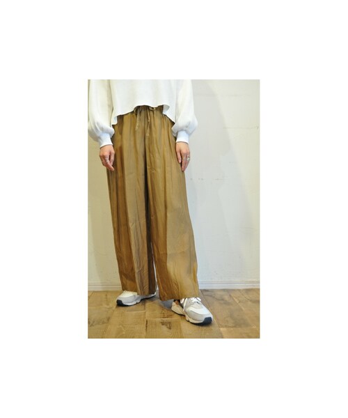 定番キュプラ素材のシャーリングパンツ。 ウエスト部分はゴム仕様でリボンが付いています。 裏地付きです。 ワイド型で肌触りも良く、とても穿き心地が良いパンツです。 全5色展開。 ●商品一覧トップページはこちら↓ http://urx3.nu/LHHy