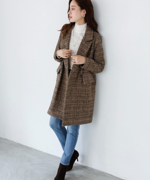 ジャケットのような感覚で着られるミディアム丈のチェスターコート。トレンド感のある大ぶりなチェック柄がコーディネートに華やかさをプラスしてくれます。 程よくゆとりを持たせたシルエットなので、厚手のインナーにもスッと羽織っていただけます。 大きめの襟がアクセントになるとともに、小顔効果も期待できます。