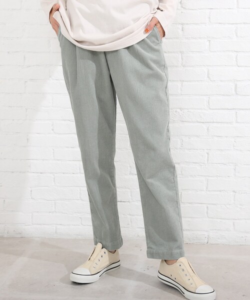 【デザイン】トレンド感のある太目のコーデュロイを使用したイージーテーパードパンツ。シューラルーの新定番である人気のイージーテーパードは、腰回りゆったりでウエストゴムで楽ちんながらも裾に向かって細くなっているのですっきり見えるシルエット。ざっくりとしたニットに合わせてリラックス感のあるスタイルが今年らしくておすすめです♪※ポケット数:前×2 後ろ×2【生地感】やや太めの畝感が特徴のコーデュロイ素材。※裏地なし【サイズ】小さいサイズ01(S)サイズ、大きいサイズ04(LL以上)展開あり。※05(3L)サイズはWEB限定サイズです。【スタッフ着用コメント】ダークカラーが増えがちな秋冬のコーディネートに嬉しいアイボリーとライトグリーンの2色と、ベージュカラーも選べる2色展開という、カラバリがポイント。ハイウエストなのでインすれば足長見えが叶い、アウトスタイルでもだらしなく見えない、程よいゆるさのあるテーパードパンツです。モデル情報:身長167cm B80 W57 H83 着用サイズ:02(M)店舗へのお問い合わせ商品番号:C62-63022●製品寸法:01(S):W~70cm H92cm 股下65cm 前股上30cm 渡り幅29cm 裾幅16cm02(M):W~74cm H95cm 股下66cm 前股上31cm 渡り幅30cm 裾幅17cm03(L):W~78cm H98cm 股下67cm 前股上32cm 渡り幅31cm 裾幅18cm04(LL):W~82cm H101cm 股下68cm 前股上33cm 渡り幅32cm 裾幅19cm05(3L):W~85cm H104cm 股下68cm 前股上33cm 渡り幅33cm 裾幅19cm備考: