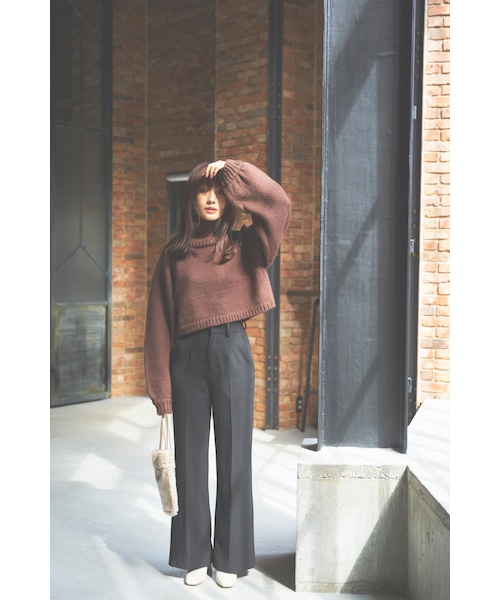 細部までシルエットに拘ったフレアパンツです。全体的にスッキリとしたシルエットで、膝から裾にかけたフレアは美脚効果抜群!肉厚な素材を使用しているので、下着が響きにくいのも嬉しいです。ウエストはバック部分のみゴムを使用。インスタイルは綺麗に見えて着心地はストレスフリーな、毎日履きたくなるパンツです。