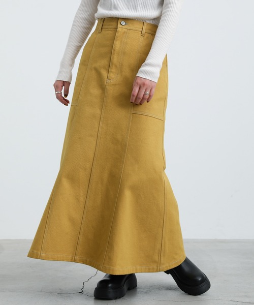 -point- & -styling-歩くときにふわっと揺れる裾が魅力のステッチデザインフレアスカート生地とカラー違いの糸で施したスティッチが特徴のスカートです。表に出したポケットの横の切り替えが目線を上に持ってきてくれるので、縦ラインの中にもメリハリをつけながら足長効果を期待できます。腰回りは広がりすぎないシルエットで、オーバーサイズのトップスと相性バツグン!程よく肉厚な柔らかい素材でウエストは後ろのみゴムなので、フロントはすっきり綺麗に窮屈感なく着用頂けます。季節問わず履いていただけて着回ししやすいアイテムです重量感のあるオーバーサイズのニットでゆるっとカジュアルなスタイリングがおすすめです。Aラインロング丈カラースカート----------------------------素材 綿87%・レーヨン12%・ポリエステル1%----------------------------伸縮性 なし生地の厚さ ★★★★★裏地 なし----------------------------※モニター・環境等により実際の商品と多少色味が異なって表示される場合がございます。 予めご了承をお願いいたします。【お買いものをお楽しみいただく為に!】▼商品のお気に入り登録完売カラーの再入荷通知や、ラスト1点の通知、セールの通知も受け取ることができます。▼ブランドのお気に入り登録新商品や再入荷など、いち早くブランドのお得な情報を受け取ることができます!