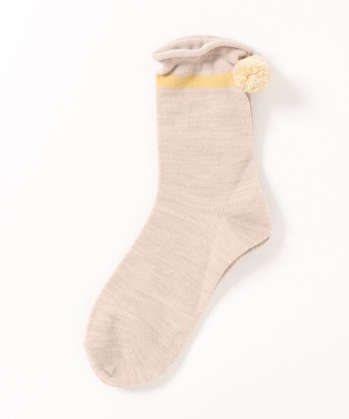 ふわふわのぽんぽんがワンポイントになった、大人可愛いソックス。フレアに広がる履き口に、バイカラーラインがモダンな表情をプラスするアクセント◎ローファーやパンプスを合わせて、足元も抜かりなく愛らしくスタイリング出来るアイテムです。