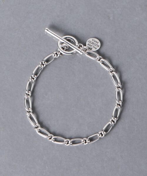 シンプルながらもリズミカルな印象があるブレスレット。きれいな光沢も見られ、手元に上品な華やかさを加えます。ラフなカジュアルコーディネートにも合わせやすく、幅広く活用できるアイテムです。留め具は着脱がスムーズなトグル式を採用。収納に便利な巾着袋付きです。<PHILIPPE AUDIBERT(フィリップオーディベール)>1989年にスタートしたフランスのファッションアクセサリーブランド。高品質で、レベルの高いデザインをコンセプトに、ファッショナブルなアクセサリーを制作しています。【注意事項】※商品を使用前に、タグ等に記載されている「取り扱い上の注意書き」、「洗濯表示」を必ずご確認ください。※商品画像は、光の当たり具合やパソコンなどの閲覧環境により、実際の色味と異なって見える場合がございます。予めご了承ください。※商品の色味の目安は、商品単体の画像をご参照ください。お問い合わせの際は、ユナイテッドアローズ カスタマーサービスデスクまで下記の品名/品番をお申し付け下さい。品名:P/A E CHN BRC hommeSarah 品番:13333435996