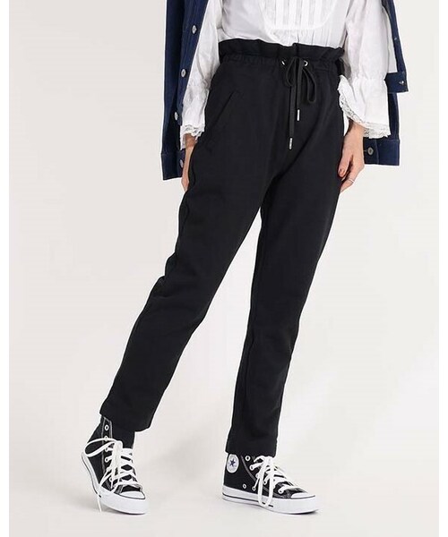 スウェット見えしない、ハイウエストで太めのウエストがアクセントになるスウェットパンツ。トップスのウエストをINして脚長に見せたり、短丈のジャケットなどとも相性◎です。低身長さん・小柄さんにもおすすめ。
