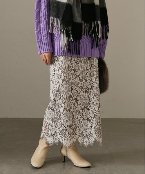 大人気! あっという間に完売してしまったレーススカートが追加決定! 品番21060140523030の追加品番です。 【2021AW】 LaTotalite 総レースで仕立てた気品あるレディなタイトスカート。 デザイン性のあるレース生地をタイトシルエットに、大人がきれいにもカジュアルにも楽しめる一枚です。 ウエストはゴム仕様のイージーな履き心地も魅力。 マキシ丈のスカートは、履くだけで今ぽいスタイリングが仕上がります。 パーカーやボーダーカットソーにスニーカーで大人カジュアルな着こなしに。 ジャケットやブラウスを合わせて、きちんと感ある着こなしも◎ シーンレスに長いシーズンで着用可能なお勧めスカートです。 ********************** 透け感:足元のみあり 裏地:あり 伸縮性:なし 光沢感:なし 生地の厚さ:薄目 ********************** ********************** 【スタッフ着用コメント】 《スタッフ名:yukimi》 身長:160cm/体型:普通/普段サイズ:S~M/着用サイズ:38 サイズ感:普段36サイズですが、38サイズだと腰位置が落ちます。 ウエスト見せることが多いスタイリングならジャストサイズがおすすめ。 素材感:総レースでとても軽いです。 着心地:後ろにスリットが入っているので歩きやすいです。締め付けも無し。 ********************** ※取り扱いについては、商品についている品質表示でご確認ください。 ※店頭及び屋外での撮影画像は、光の当たり具合で色味が違って見える場合があります。 商品の色味は、スタジオ撮影の詳細画像をご参照ください。