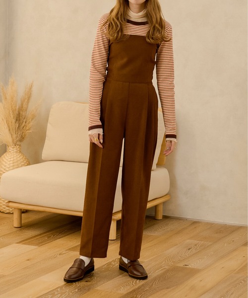 スタンダードにパンツ、オールインワンなど多様にアレンジ可能◎ パンツ部分は、テーパード風のゆとりと、ストレートラインのスラリとした脚長シルエットをミックス。 ハイウエストバランスで、ストレスのない着心地と抜群のスタイルアップ効果が叶います。 ラフにも、おでかけにも対応できる優れもの! ■point ・適度な厚みと透けないピーチ起毛素材 ・落ち感が綺麗な美シルエット ・トマルチウェイなオールインワン ■fabric 適度な厚みと落ち感あり。 さらりとした肌触りで、リラックスした穿き心地。 …………………… 透け感:なし 厚さ:厚手 伸縮性:なし裏地:なし ポケット:あり ……………………※詳しいお手入れ方法は商品タグをご参照ください。 ※ご注意※ ・屋外の光や照明の当たり具合で、実際の商品の色味とカラー別画像の色味に若干の違いが発生する場合がございます。 ・詳細画像と併せてご確認の上、ご注文いただきますようお願い致します。 ※サイトに表示されているカラー名と実際のお届け商品に記載されているカラー名が異なる場合がございます。 ●お買い物をお得によりお楽しみいただく為に● ▼商品のお気に入り登録&ブランドお気に入り登録▼ がおすすめです! ♡をクリック 完売カラーの再入荷通知や、ラスト1点の通知、プライスダウンしたセール通知も受け取ることができます。 ブランドお気に入り登録もご一緒にお願い致します。