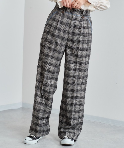 秋冬仕様のチェックパンツがでました◎ ◇Point◇ シンプルなアイテムとの相性抜群♪ フェイクレザーのパイピングがワンポイントのアイテムです! ◇Material◇ 素材感がグッと秋冬感を感じさせてくれます〇 やわらかい生地感なので、長時間のお出かけもラクラク♪ ◇Coordinate◇ 今の時期ならシンプルめなニットがおすすめ! ファーベストやレザ素材のアイテムとも相性抜群です。 タックインが特にデザインが映えて見えること間違いなし ※照明や天候により実際の色味と異なって見える場合がございます。 ご了承くださいませ。