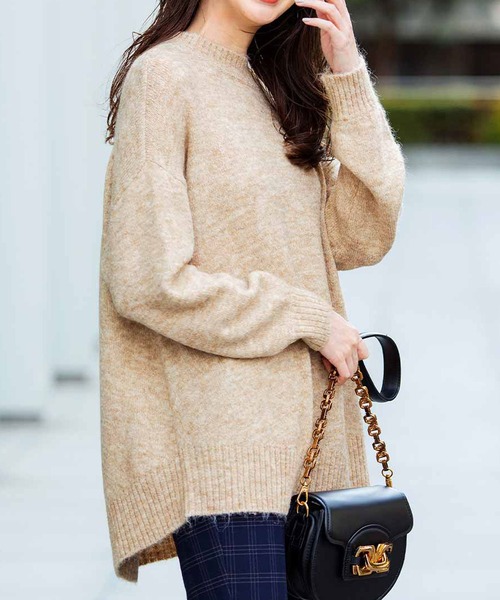 ウール・アルパカ混なのに洗濯機で洗えるからお手入れが断然〝らく〟ゆったりとしたシルエットと、ラウンドしたすそのフレアーラインが女性らしい印象のニット。ヒップが隠れる丈もうれしいポイントで、ふんわりとした暖かな質感と、ベーシックで合わせやすいカラーが冬のコーデに映えます。細身でもワイドでも、どちらのボトムスにも好相性。■FROM IEDITプランナー―生地の厚さ:通常の厚みのニットです。―透け感:ありません。―伸縮性:あります。―コメント:アルパカ・ウール混のふんわりと軽やかな着心地のニットです。ゆったりとした、腰まわりが隠れる丈感です。