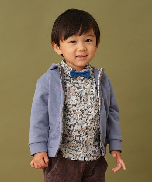 無地ながらもおしゃれセンスの高いパーカです。 こだわりはフード裏に配したリバティファブリック♪ 遊び心がミックスされた総柄デザインにお子さまだけでなく、大人も夢中になりそうです。羽織としても重宝する裏毛仕様もうれしいところ。カンガルーポケットには伸縮性のあるリブを取り入れ、物の出し入れをスムーズにしました。【透け感】透けない【生地の厚さ】普通【伸縮性】あり【裏地】なし【ポケット】あり