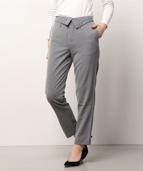 ウエストの折り返しデザインが特徴のスラックス。S,Mの2サイズ展開となっております。ウエストのデザインで一気にトレンド感アップすること間違いなし!クロップド丈のトップス合わせでチラッと肌見せスタイルがおすすめ♡品番:21aw-aypt04-blk / 21aw-aypt04-gry
