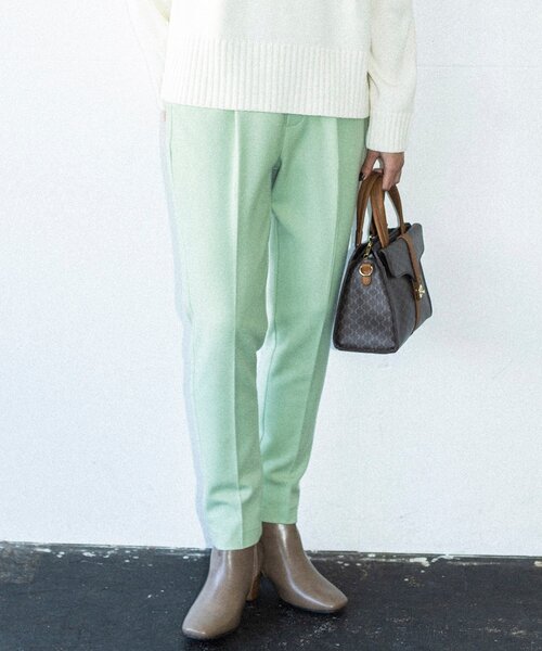 【デザイン】ヒップから太ももにかけて分量を出して、腰回りはゆったりとしており、膝から裾にかけては細身のシルエットになります。センタープレスですっきりとした印象です。※ポケット数:横×2、後ろ(ダミー)×2【素材感】表起毛ながらもピリングしにくい素材を使用しています。柔らかくストレッチ性が高いので、やさしい穿き心地です。※裏地なし※オフホワイト(003)はやや透け感があるため、インナーの着用をおすすめします。こちらの商品は主に冬に着用いただける商品です。モデル情報:身長162cm B83 W60 H84 着用サイズ:12(M)店舗へのお問い合わせ商品番号:040-63023●製品寸法:10(XS):W63cm H96cm 股下64cm 前股上29cm 渡り幅25cm11(S):W66cm H99cm 股下64cm 前股上30cm 渡り幅26cm12(M):W69cm H102cm 股下65cm 前股上30cm 渡り幅28cm13(L):W72cm H105cm 股下67cm 前股上31cm 渡り幅29cm14(XL):W75cm H108cm 股下67cm 前股上31cm 渡り幅30cm備考: