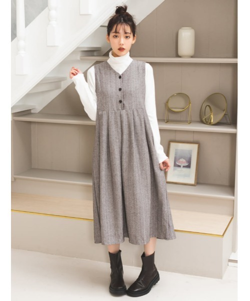 calin/カラン 着るだけで毎日がハッピーになる “カジュアルポップ”なスタイルを提案◎ 幅広いシーンで活躍するヘリンボーンジャンパースカート フロントのボタンがアクセントになった、ヘリンボーン柄のジャンパースカート。ウエストの切り替えから広がるシルエットが、女性らしい雰囲気を演出します。インナーにブラウスやカットソーを合わせたり、さまざまな着こなしを楽しめるアイテムです。 ※撮影時のライティング、PCやスマートフォンの環境により写真の色味が実際の商品と異なって見える場合がございます。ご了承の上お買い求め下さいませ。 ※モデル着用画像は実際の色と多少異なる場合がございますのでマネキン画像をご確認ください。 《 お知らせ 》 ▼商品のお気に入り登録 お気に入りアイテムの値下げ・再入荷・在庫1点などの通知を受け取ることができます。 ▼ブランドのお気に入り登録 新商品や再入荷、セール、クーポン配布などお得な情報を受け取ることができます。