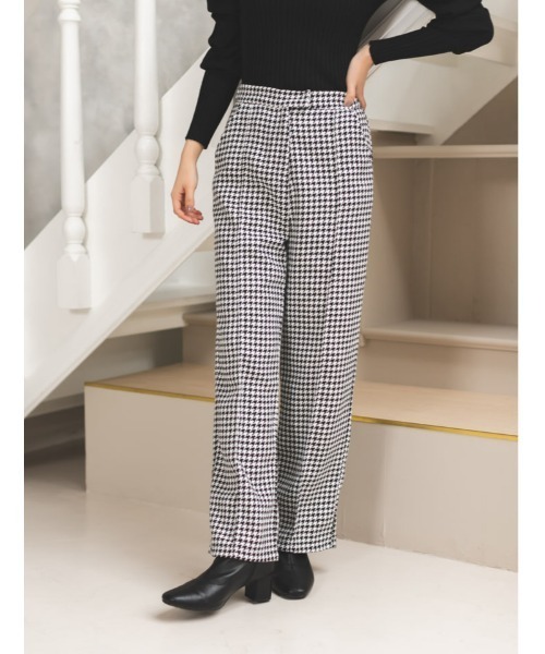 calin/カラン 着るだけで毎日がハッピーになる “カジュアルポップ”なスタイルを提案◎ クラシカルな千鳥柄が目を惹くセンターラインスラックス モノトーンの千鳥柄がクラシカルな印象のスラックス。センターライン入りできちんと感がありながら、ウエストはバックゴム仕様で穿き心地の良さも嬉しいポイントです。シンプルなトップスと合わせるだけでサマになる、スタイリングの主役級アイテムです。 ※撮影時のライティング、PCやスマートフォンの環境により写真の色味が実際の商品と異なって見える場合がございます。ご了承の上お買い求め下さいませ。 ※モデル着用画像は実際の色と多少異なる場合がございますのでマネキン画像をご確認ください。 《 お知らせ 》 ▼商品のお気に入り登録 お気に入りアイテムの値下げ・再入荷・在庫1点などの通知を受け取ることができます。 ▼ブランドのお気に入り登録 新商品や再入荷、セール、クーポン配布などお得な情報を受け取ることができます。