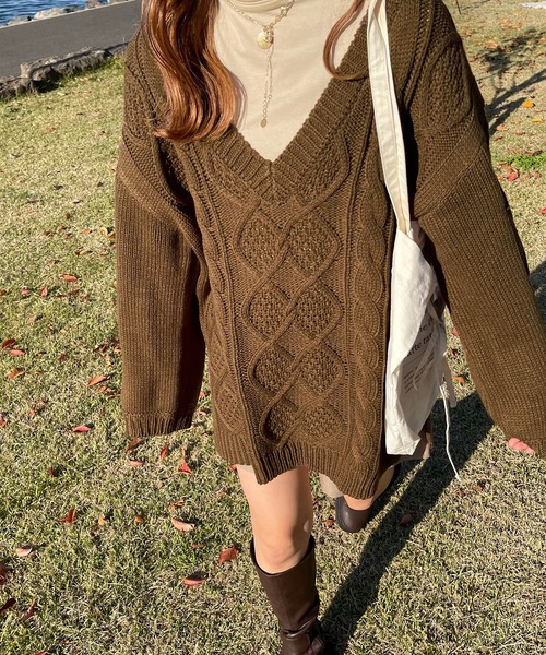 【秋の街に馴染む・紅葉おしゃピクに着ていきたい】をテーマに♪ ~Autumn picnic collection~ 目を引く大きなケーブル編みがかわいい♡ 深めのVネックが秋冬のレイヤードコーデをより楽しくします♪ チュニック丈でリブパンツやスカートを合わせたゆるっとコーデがおすすめ◎ 【コーディネート】 Vネックを生かしたレイヤードがおすすめ タートルネック(品番:258462)やロンTを入れてカジュアルに。 レースキャミを入れて肌見せで女性らしいコーデも◎ ………………………………… 透け感:なし 伸縮性:あり ………………………………… ※ご覧のモニター環境や撮影環境により実際の商品と多少色味が異なって見える場合がございます。 ご理解の程よろしくお願いいたします。 apresjour clair (アプレジュールクレア) apres_jour から大人の女性に向けた新ライン誕生 淡色をテーマにカジュアル×フェミニンスタイルをお届けします。 毎週木曜21:00〜新作発売 -オフィシャルInstagramにて最新情報や限定情報を毎日更新中!- 【お買い物をよりお楽しみいただく為に♪】 ▼商品のお気に入り登録をおすすめします ♡をクリック! 完売カラーの再入荷や、ラスト1点の通知、 セールの際の通知を受ける事ができます。 ブランドのお気に入り登録も ご一緒にお願い致します。