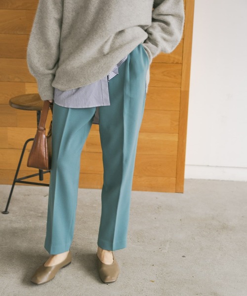 【冬スタイリングを華やかに昇華!今季注目のカラーパンツが登場】ゆったりめのテーパードシルエットでお作りした冬に活躍必至のカラーパンツ。ウール混になっているので暖かく、冬場の着用にぴったりの1本です。細めのベルトでウエストの締め付けを無くし、ワンタックで腰回りにゆとりをもたせているので、リラックス感のある履き心地に。カラーニットと合わせたカラーグラデーションコーデや、ベーシックなアイテムに差し色として使用するなど、冬のスタイリングを鮮やかに彩る今季イチ押しのアイテムです。POINT・今年押さえておきたいカラーパンツ・360度美シルエット設計・体型に合わせて選べる3サイズ展開COORDINATEシンプルなニットやスウェットなどと合わせて。冬場上からアウターを羽織った際も目を引くカラーパンツです。締め付けが少なく楽に着用できますが、全体的にすっきりとしたシルエットに仕上げているので、ボリュームのあるニットなどとも好相性◎【体型別スタッフ着用レビュー】《 身長:153cm/体型:小柄/着用サイズ:34 》丈感は丁度良いですが、ウエストがややぴったりすぎる感じがしたので、ゆったり履きたい場合はワンサイズ上げても良いかなと思いました。※洗濯の際は、他の物と分けてください。※長時間水に漬けたり、濡れたまま放置したりしないでください。※その他お取り扱いに関しましては、商品に付属のアテンションタグをご覧ください。※商品画像は、光の当たり具合やパソコンなどの閲覧環境により、実際の色味と異なって見える場合がございます。予めご了承ください。※商品の色味の目安は、商品単体の画像をご参照ください。▼お気に入り登録のおすすめ▼お気に入り登録商品は、マイページにて現在の価格情報や在庫状況の確認が可能です。お買い物リストの管理に是非ご利用下さい。-----------------------------透け感:なし伸縮性:ややあり裏地:なし光沢:なしポケット:あり-----------------------------