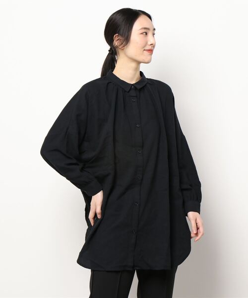 柔らかな風合いの綿100%素材で仕立てたシャツチュニック。 ギャザーの生み出すふんわりとしたシルエットで、リラックス感のある印象を演出。 裾もラウンドフォルムに仕上げることで優しげな表情をプラスします。レイヤードコーデにも映えるデザインで、ショート丈のニットやベストと合わせたスタイリングがおすすめです。