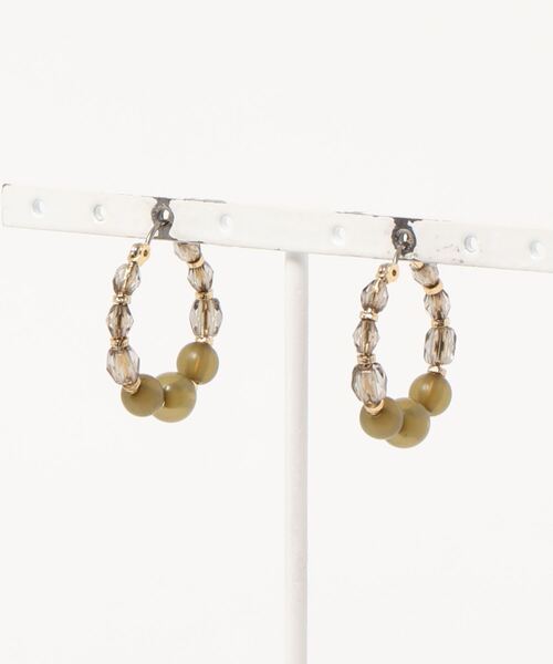 小ぶりなのにインパクト大のフープピアス。 形の異なる2種類のビーズを使用しヴィンテージ風に仕上げました。 フープは真鍮素材を使いお手入れも楽ちん。いつものコーデにプラスするだけで顔周りを華やかにしてくれます。
