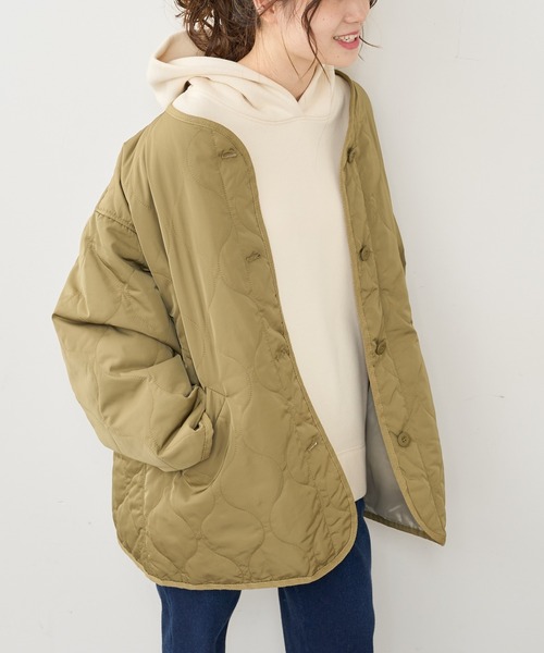 ピュアルセシン 2021 autumn&winter collection【sophisticated retro】 ◇冬のデイリールックに欠かせないキルトジャケット◇ ●デザイン 軽い着心地と保温性を兼ね備えた、冬の装いに欠かせないキルトジャケット。 波型のキルティングや程よく開いた首元は、大人女性の抜け感を演出します。 冬のニットやパーカーなどと合わせても窮屈感なくお召しいただける絶妙なサイズ感でご用意。 流行り廃りが無く、ワードローブにあると重宝するジャケットです。 ●カラー展開 カーキ/ブラウン/ブラックの3色展開 ●素材 やや艶感があり、大人の女性もコーディネートに取り入れやすい1枚。 軽量感があり、サラッと羽織れる手軽さが嬉しいポイントです。 ●スタイリング 長過ぎず短すぎない、絶妙な着丈なのでボトムを選びません。 デニムパンツを合わせてスタイリッシュに纏めたり、ボリュームのあるスカートと合わせてフェミニンなコーディネートに仕上げるなど幅広いアイテムに対応します。 またノーカラーなので、タートルネックやフードの付いたアイテムとも好相性◎ 冬にマストでゲットしたいアイテムです。 =============================== 透け感:なし 裏地:なし 伸縮性:なし 光沢感:ややあり 生地の厚さ:普通 【スタッフコメント】 年齢:20代前半/身長:157cm/普段着用サイズ:Mサイズ サイズ感:絶妙なオーバーサイズで、程よい抜け感が可愛いです。ヒップをしっかり覆う着丈なので安心です。 素材感:ツルっとした肌触りで、軽い着心地です。 =============================== ※撮影場所やお使いのモニター環境により若干お色味が異なる場合がございます。特にロケの撮影では明るく見える傾向にございます。 ※予約商品はサンプルで撮影をしております。若干の仕様が変更になる場合がございますので予めご了承の上ご注文くださいますようお願いいたします 。