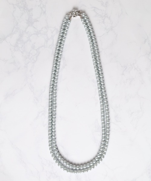 【本真珠に近い質感や重さのガラスパールを使ったネックレス】 デザイン性のある2重仕様で幅広いスタイリングのアクセントに! 冠婚葬祭・ビジネスのフォーマルソーンから カジュアルトレンドアイテムとして オンオフ共に使えるアイテムです。 デザイン性の高いロングサイズ24inch(約61cm)サイズ採用で スタイリングの悪銭にお勧めです! 【Attention】 ・金属アレルギーなど、皮膚の弱い方のご使用はお控えください。 ・アクセサリーをご使用中に万が一、かゆみ・かぶれ等、皮膚に異常を感じた場合には直ちにご使用をお止め頂き、専門医に相談してください。 ・小さなお子様のいらっしゃる環境では誤って飲み込まないよう、手の届かない場所に保管をお願い致します。 ・ナチュラルな自然な風合いをだすための成型を行っています。若干のゆがみやアタリなどもございますが特性になりますのでご了承ください。