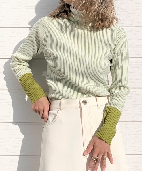 バイカラーが可愛い、二重臼編みのリブニットです。 リブの表面とリブを広げたときに見える裏糸をバイカラーにすることで、うっすらとストライプ柄に見えます。 シンプルなアイテムだからこそ編み地に拘った1枚です。 着まわしの効く万能ニットトップス。 レイヤードのインナーやハイウエストボトムにインしたりと、デイリーに活躍すること間違いなし。 二重臼編み…異なる2本の糸を表面・裏面ときれいに分けて編む技法 《インフォメーション》 ◆商品のお気に入り登録 完売していても再入荷時に再入荷通知を受け取ることができますので、是非ご登録ください。 ◆ブランドのお気に入り登録 新商品や再入荷などの情報を受け取ることができますので、是非ご登録ください。