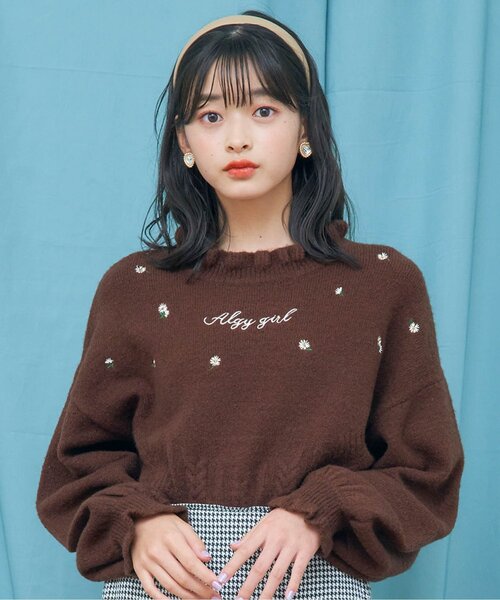 ○ニコプチ12月号掲載商品○ ALGY(アルジー)のニット・セーター「フラワーシシュウニット」は、手頃な価格と、流行に敏感な女のコの日常を可愛く、甘く彩るデザインが人気!これ1枚でおしゃれ上級者になれちゃう! サイズ XXS・・・125~135cm XS・・・135~145cm S・・・145~155cm M・・・155~165cm