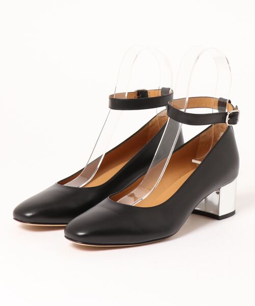 スムースカーフスキン.丸みを帯びたつま先のアンクルストラップシューズ. ストラップはシルバーのメタルバックルで調節可能. レザーのアウトソール ヒールはシルバートーンのレザー.