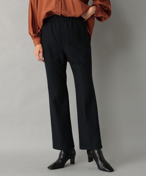 マルチに活躍する大人のリラクシーパンツ ●デザイン 柔らかで暖かな両面起毛生地でお作りした一枚。 コーディネートのバランスを取りやすい細身のフレアシルエットに。 ウエストは総ゴム仕様でストレス無く着用頂けるのもポイント。 ちょっとしたお出掛けにもおすすめの、楽して美脚見えする優秀パンツです。 ●おすすめコーディネート カジュアルなボリュームニットはもちろん、ジャケットや革小物などのキレイめなアイテムと合わせるのもおすすめ。 ●素材 ポリエステル 63% レーヨン 33% ポリウレタン 4% ・柔らかで暖かな両面起毛生地 洗濯方法:手洗い 透け感:なし 光沢:なし 裏地:なし 生地の厚さ:ふつう 伸縮性:ややあり ウエストゴム:あり ファスナー:なし ポケット:あり ============================== 【注意点】 ※画像の商品は光の照射や角度、お使いのモニター環境により、 実物と色味が異なる場合がございます。 あらかじめご了承下さいませ。 ============================== 【お買い物をもっと便利に楽しく♪】 『♡』をクリックでお気に入り登録 ・「商品のお気に入り登録」で・・・ ラスト1点や再入荷の通知が届きます。 登録して頂いた商品だけが対象となる、あなただけのタイムセールが開催されることも! ・「ブランドのお気に入り登録」で・・・ 新商品や再入荷など、いち早くブランドのお得な情報を受け取ることができますので、ご登録をおすすめします! ==============================