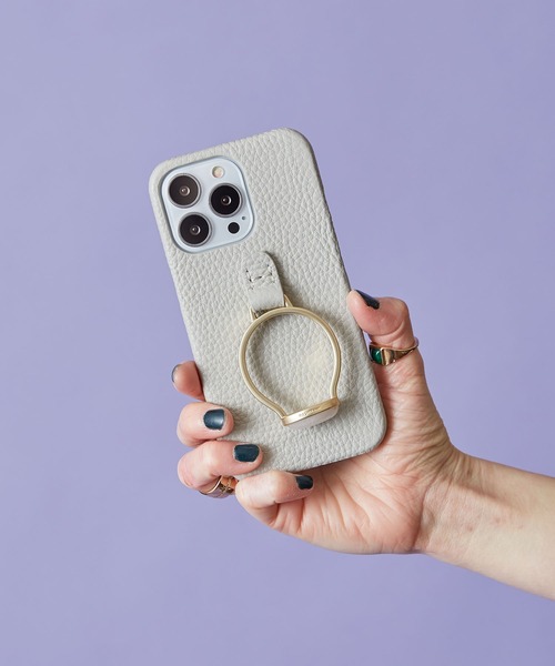 スマホリングにもスマホスタンドにもなる ジュエリーのような天然石モチーフ付き 【天然石リングiPhoneケース】 ※iPhone13pro 用 ◆おすすめポイント ・本物の天然石を使用 ・ジュエリーを身にまとったようなデザインがおしゃれ ・本体には牛革を使用し、上品な印象 ◆リングの使用方法 ・指を通して使用すれば片手での操作に安定感が出ます ・リングはiPhoneを横向きに自立させることが可能 動画を見ながらの勉強やレッスン、 レシピを見ながらキッチンで料理、 テレビ電話、リモート会議など日常の様々なシーンで大活躍します◎ 可愛いだけでなく、おうち時間を充実させてくれる実用的なアイテムです! ギフトにもおすすめ◎ 新色入荷 &完売カラー再入荷 ! < 本体カラー × 天然石 → 天然石の意味・効果 > NEW ▷コッパー(ブロンズ) × スモーキークォーツ → マイナスエネルギーをポジティブに変える、精神を安定させる石 NEW ▷ブルーベリー(ブルーパープル) × ソーダライト → 正しいことを行う勇気と行動力を与えてくれる石 ▶︎ライトグレー × クォーツァイト → 持ち主の意志を強くし、目標達成に導く石 ▶︎アッシュブルー(グレイッシュブルー) × マザーオブパール → 女性としての魅力を高め、包容力を育む石 (6月誕生石) ▶︎モカ × ゼブラジャスパー → 心理的抑圧を解消し、潜在能力を引き出す石 ▶︎グレー × タイガーアイ → 見通す力や、正しく道を選ぶ先見性 (10月誕生石) ▶︎ラベンダー × アメジスト → 真実の愛を守り抜く愛の守護石 (2月誕生石) ▶︎シルバー × ラピスラズリ → 邪念を払いのける、幸福を引き寄せる石 (12月誕生石) ♦♦天然石の柄や色味は個体差が生じます♦♦ 【商品をお気に入り登録】▶︎▶︎ 完売カラーの再入荷通知やラスト1点の通知、プライスダウンの通知も受け取ることができます◎ 【お気に入りブランド登録】▶︎▶︎ 新作アイテムや限定アイテムの入荷など、お得な情報をいち早くお届けします◎ぜひご登録ください♪ ※商品画像はサンプルです。告知することなく、色味・パーツ・仕様などに若干の変更がでる場合がございます。 >>>>> ご使用上のご注意 <<<<< ・天然石は天然のものを使用しています。 ・天然由来の小傷が石の内側や外側についている場合がありますが、商品不良ではございません。 ・天然石への過度な衝撃による "石欠け"にご注意下さい。 ・商品は天然皮革を使用している為、素材に個体差が生じる場合がございます。 ・汗、雨、摩擦などの使用条件等により素材の色落ちや他の物への色移り、パーツの劣化や損傷などの可能性がございます。 ・本品着用後においての素材の擦れやキズ、経年変化による変色や素材の劣化などは保証/修理対応外となります。 ・リングが返り、石が上方へ向いた状態になると、レンズに石が当たり、ひび割れや破損を生じる可能性がございます。十分にご注意ください。 ・ご使用の充電器や充電スタンドの種類により、ケースを装着したまま使用できない場合があります。その際はその都度外してご使用ください。