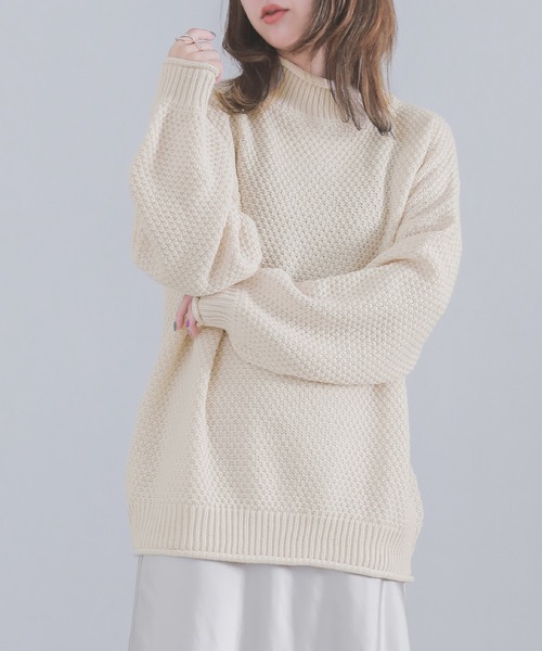 こなれ感漂う「旬顔ニット」。ゆるっとラフなサイズ感と、先がくるんとしたハイネック・袖・すそリブ、ぽわんとした袖のシルエットがセンスを格上げするアイテム。シンプルに見せて細部にまでこだわりました。ニットの凹凸がお洒落に見せる、鹿の子編みニットを使用。型崩れのしにくさと、柔らかな肌触りで風合い漂う。着るだけでお洒落に仕上がる、≪n'OrLABEL≫鹿の子編みハイネックニットです。【ニット製品につきまして】ニット製品は、身体に自然と馴染む伸縮性が特徴となります為、編み上げる行程やプレス仕上げによって多少サイズや風合いの個体差が生じる場合がございます。着用した時と実寸の長さが変わる可能性がございます。また、着用の際ピリングが避けられず、完全に防止することはできません。ピリングができましたら、引っ張ろうとせずハサミや毛玉取り器で丁寧に取り除いてください。ニット素材の持つ特性となります為、ご了承の上ご購入いただきますようお願いいたします。