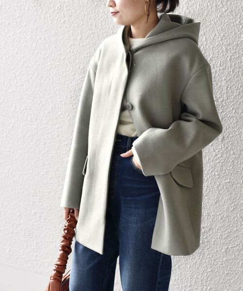 ■デザイン圧縮したジャージ素材でミディ丈のフードコートを作りました。フロントは本比翼のボタン明きになっており、フードも2重仕立てに。裏地もしっかり付いている布帛仕立ての仕様になっています。ブラウンとグリーンはオリジナルカラーで展開しています。ブラウンは濃色ですが何にでも合わせやすい優しい色目に拘りました。グリーンはSHIPSらしい、着こなしのポイントになるカラーとなっています。■素材ジャージ素材の為、軽くてふんわりとした表面感が特徴です。※末永く愛用頂く為に、アテンションタグ・洗濯ネームを必ずご確認の上、着用又はお取り扱い下さい。※屋外での撮影画像は、光の当たり具合で色味が異なって見える場合があります。商品の色味は、スタジオでの詳細画像をご参照ください。