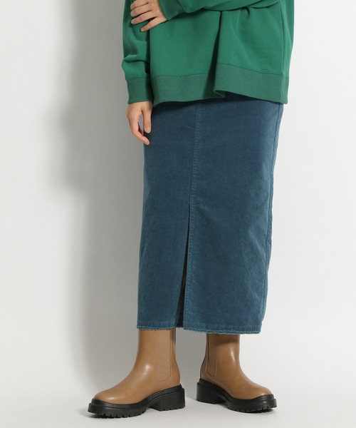オトナ見え&ラクチンなコーデュロイスカートシンプルなストレートシルエットのコーデュロイ素材スカート。ストレッチ入りの素材と後ろゴムウエストで、すっきり見えて手軽に着られるイージータイプです。合わせるものを選ばず使えるので、着回しに重宝すること間違いなし。