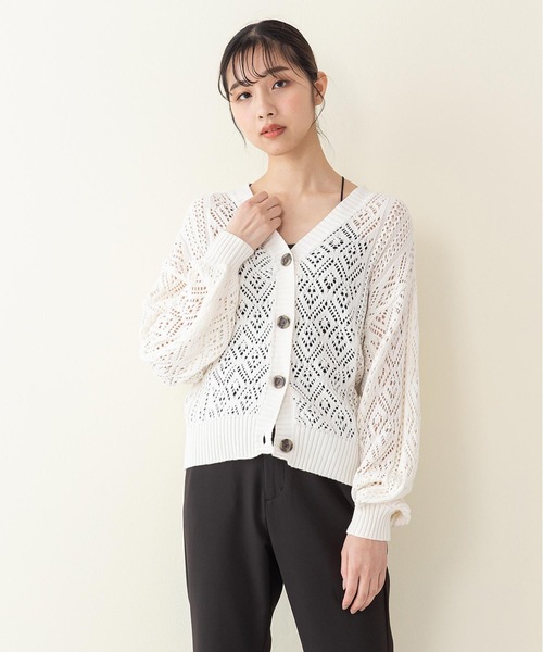◆かぎ針編みVネックカーディガン 【特徴】 ・かぎ針編みなので柔らかい感触とエアリーな風合いが春っぽいニット素材です。 ・ボリュームスリーブとドロップショルダーのゆるっとした女性らしいシルエットで、どんなボトムにもマッチするアイテムです。 【コーディネート】 ・スカートと合わせてAラインのスタイリングやスリムパンツと合わせたすっきりしたスタイリングなど幅広いコーディネートが可能です。 ・すっきりコーデならスキニーパンツ、スラックスパンツ、リブパンツ、レギンス、スパッツがオススメです。 ・ゆったりコーデならワイドパンツ、ジョガーパンツ、スカート、デニムがオススメです。 ・パンツの丈をくるぶし丈にするとコーディネートのポイントになります。 ・ニット帽、ビーニー、キャップ、バケットハット、ベレー帽などのセットアップもオススメです。 【innocent blue:イノセントブルー】 純粋さを合わせた素敵な大人の女性たちに、ベーシックながら今の気分を取り入れた。デイリーカジュアルを提案する、ウェアと服飾雑貨のレディースブランドです。 ■商品をお気に入り登録する■ お気に入り登録しておくと、完売商品の再入荷通知を受け取れます。 さらに、ラスト1点・セール時にも通知が来ます。 ■ブランドをお気に入り登録する■ 新入荷・再入荷などのブランド情報をいち早く受け取れます。