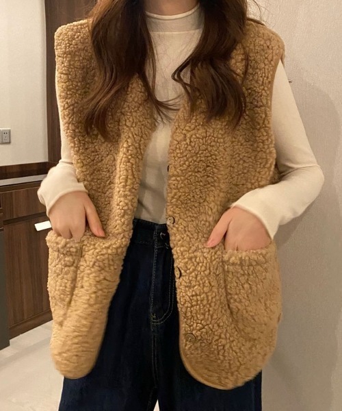 【ラブリーボアベスト】もこもこのラブリーな雰囲気のボアベストを紹介します!▼ポイント- かわいいもこもこな素材感- 普段使いにぴったりなべストアイテム- かわいらしいく優しい雰囲気▼ディテール気軽に着こなせる可愛いもこもこのボアベストです!暖かくゆとりのあるフィット感で単独で着用するのもかわいいし、インナーとしても着用していただくことができるベストアイテムです♥どんな場面にも合わせてして着用していただける、もこもこの暖かいシーズンアイテム♡冬から春まで楽しんで着用していただけますよ〜!▼おすすめコーデちょっとしたデイリーコーデにポイントとして着用しやすくカジュアルに合わせていただくことをおすすめします♡*ご覧のモニター環境や撮影環境に応じて実際商品の色と異なって見える場合がございますので、ご了承ください。*素材の特性を考慮して管理法留意事項を購入/着用する場合は必ず確認お願いします。サイズ感 -普通伸縮性-なし肌触り-やや柔らかい厚み-普通透け感-なし★商品お気に入り登録[お気に入り登録] を押すと登録完了!お好きなアイテムとサイズのカラーを登録すると再入荷、販売のお知らせ等を受け取れます。★ブランドお気に入り登録新商品、お買い得情報、クーポンなどをできるだけ早く通知を受け取れます。- ブランドの最新情報はinstagram【@by__munir】でご確認いただけます!* 注文履歴ページよりご注文いただいた事前に注文した商品の配送時間を確認できます。* 他のキャンペーンにより、期間中価格が変わる場合があります。* 販売は予告なく終了することがあります。