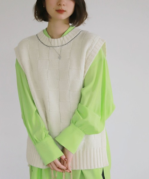 【2021AW】SLOBE citron.ブロック柄に編み上げたニットベスト。さり気ない配色を効かせて、コートインしてもポイントになる1枚に仕上げました。抜け感のあるサイドのデザインでインナーを選ばずレイヤードしていただけるベストです。同シリーズでカーディガン(品番21080912603040)もございます。※取り扱いについては、商品についている品質表示でご確認ください。※店頭及び屋外での撮影画像は、光の当たり具合で色味が違って見える場合があります。商品の色味は、スタジオ撮影の画像をご参照ください。※照明の関係により、実際よりも色味が違って見える場合があります。またパソコン・スマートフォンなどの環境により、若干製品と画像のカラーが異なる場合もございます。予めご了承ください。洗濯:ドライクリーニング