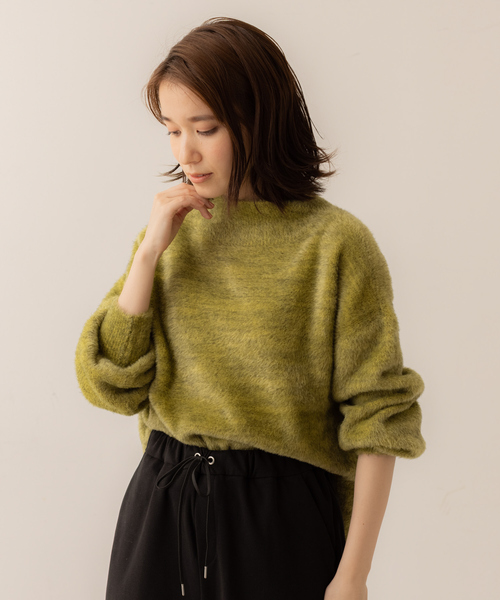 ミックスカラーの独特の風合いが楽しめるスタンドカラーのプルオーバー。裾にスリットを入れて、前だけボトムにインしてもバランス良く着こなせます。まるで羽根の様なふわふわな生地で、暖かく気心地も抜群です◎