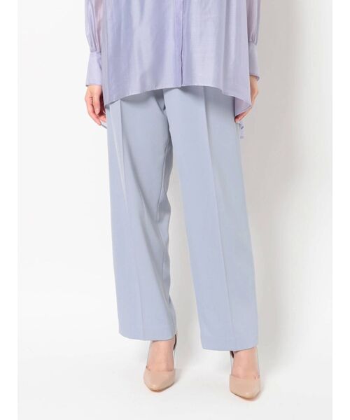 やや光沢のあるマットな生地で高級感のあるツイルを使用し、 少しマニッシュなデザインの中にも艶感を与えます。 バナナのようなふくらみのあるシルエットに、裾はストンと落ちる綺麗めな印象、 さらにハイウエストのバランスが、太めのパンツでも美脚効果は抜群です。 シンプルで大人っぽいアイテムは、クリアなカラーコーディネートが出来るよう色選びも絶妙なカラー展開です。 ▼スタイリング ブラウスをオーバーに合わせても、すっきりとしたニットをウエストインしても大人な印象に◎ 足元はヒールで合わせても短くなり過ぎなずスマートに見える丈感です。