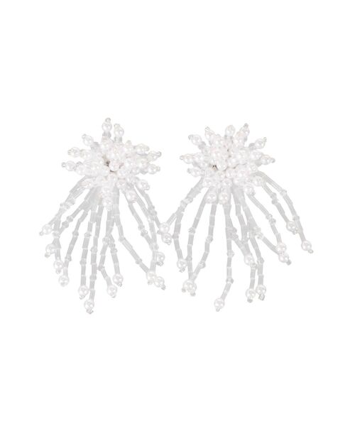 パール、カットビジュ、竹ビーズを組み合わせ、 花のように華やかな印象の形に仕上げたイヤリング。 シンプルなモノトーンのスタイリングや、ドレスアップしたい時にもぴったりのアイテムです。