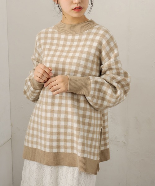 韓国っぽなギンガムニットがチュニック丈で登場! ■デザイン ・ゆったりシルエットで、大人カジュアルなデザイン。 ・深めの横スリット。 ・程良い弾力のニットは肌触りも◎ ・腰の張りが気になる方にもおすすめの丈です。 ■スタイリング ・ロング丈のボトムなら、マーメイドやタイトスカート、スキニーでコンパクトにまとめるとバランスが取りやすいです。 ・ショート丈のボトムスにロングブーツ合わせで韓国見えも♪ ----------------------------- 裏地:なし 光沢感:なし 透け感:なし 伸縮性:あり ----------------------------- model:166cm ※引っかけ注意 ・粗い組織のものや、表面に凹凸があってルーズな組織のもの 表面に糸が浮き出ているものは、ちょっとした不注意から引っかけてしまいがちです。 取り扱いの際は取り扱い絵表示確認の上、十分注意してください。 ・着用時にベルトや、バックや周囲の壁など表面の粗いものとの摩擦や引っかかりに注意してください。 ・水洗いやクリーニングの際にも他の物ものとの引っかかりに注意して下さい。 ※着用、お取り扱いの際は、商品についている品質表示とアテンションタグを必ずご確認下さい。 ※ご覧のモニター環境や撮影環境により実際の商品と多少色味が異なって見える場合がございます。 ご理解の程よろしくお願いいたします。 ■お気に入り登録のおすすめ 【気になるアイテムを登録】 ハートをクリックしてお気に入りに登録すると 完売カラーの再入荷やラスト1点の通知、セールの通知を受けとることができます。 【ブランドを登録】 新商品や再入荷、セール通知など、いち早くブランドの情報を受けとることができます。