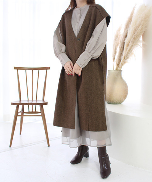 Vネックにカットされたロングベストが登場。控えめなヘリンボーン柄がポイントで、1枚羽織るとグッとオシャレ度を高めてくれるアイテムです♡両サイドの裾部分にはスリットが入っており、重くなりすぎない抜け感を演出してくれます。ロンTやニットとのレイヤードがオススです♡《Details》裏地:なし伸縮性:なしポケット:サイド×2裾部分両サイドスリット入り《Attention》※無理な力が加わったり、水気や湿気が原因で破損する恐れがございますので、お取り扱いには十分ご注意下さい。※サイズは平置きでの採寸表示です。※なるべく実物に近いカラーで掲載するよう注意しておりますが、お客様のモニター 使用環境により、若干アイテムの色が異なって見える場合もございますので予めご了承下さいませ。※商品により、若干の誤差が生じてしまう場合がございますので、予めご了承下さいませ。-------------------------------------- より快適にお買い物を楽しむ為に--------------------------------------●商品のお気に入り登録商品カート横の♡をクリック!完売カラーの再入荷通知・ラスト1点の通知・セールの通知をお知らせ!●ブランドのお気に入り登録いち早くMODE ROBEの新商品や再入荷などをお知らせ♪