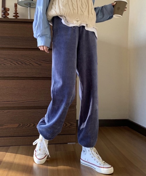 2021 Fall&Winter item秋冬に重宝する「コーデュロイ素材」ゆるっとリラックスして穿けるジョガーパンツ。【NEW COLLOR】・ブルー・ピンク●Design〈IVORY・LIGHTGRAY・SKYBLUE・LEMONYELLOWの4色展開〉・淡い色彩のパステルカラーで柔らかで華やかな印象に。・シーズンムードを高める”コーデュロイ素材”・メンズライクなジョガーパンツを秋冬定番素材で女性らしく仕上げた1着。・ウエストゴムでストレスフリー、着脱もラクチン。・サラリとした履き心地でシーズンレスで着回し。・ゆとりのあるシルエットで体型カバーしつつ、綺麗な脚ラインを演出。・裾リブの引き締め効果ですっきり見せが叶います。・絶妙なゆったり感で動きやすく、お出かけやワンマイルウェアとしてはもちろん、旅行やレジャーにもオススメ。・スポーティなリラックススタイルや上品な大人カジュアルな着こなしにも。●Styling足元にスニーカーやチェルシーブーツはもちろん、パンプスやローファー、ヒールシューズを合わせると、女性らしいキレイな装いも。ヒールと合わせるとさらにスタイルアップも実現。ベーシックカラーと相性の良いパステルカラーを取り入れると印象的に仕上がり、差し色としてシンプルなスタイルやワントーンコーデもオススメ。敢えてトップスにシャツやジャケットなどキレイめなアイテムを合わせると、大人カジュアルに着こなせます。オーバーサイズのスウェットやトレーナー、パーカーを合わせるとトレンド感のあるメンズライクスタイルに。ジョガーパンツは、ざっくりとした厚手のニットと合わせてもメリハリのあるスタイリングが完成。ビック襟ブラウスやレーストップスと合わせて、甘めのコーディネートも。冬場のアウターはダウンジャケットやキルティングジャケット、マウンテンパーカーなど、アウトドア系アウターや、ステンカラーコートなどスタイリッシュなキレイめアウターとも合わせやすいです。キャップやバケハ、ニット帽など小物をプラスワンアイテムとして加えると、こなれ感のあるリラックススタイルが完成。テイスト問わずスタイリングが可能で、ロングシーズン活躍できる1着となっています。韓国ファッションが好きな方は是非。こちらの商品はセレクト・インポートアイテムのためサイズ感が日本規格のものとは異なります。お買い上げの際にはサイズチャートでご確認頂きますようお願いいたします。【お買い物をよりお楽しみいただくために】●商品のお気に入り登録(ハートマークをクリック)完売カラーの再入荷や、ラスト1点のお知らせ、セール情報などの通知を受け取ることができます。●ブランドのお気に入り登録新商品や再入荷など、お得な情報をいち早く受け取ることができます。●最短で翌日お届け商品をカートに入れた後、注文内容の確認ページで「即日配送」を選択していただければ、最短でご注文した翌日にお届け致します。是非ご利用頂き、お買い物をお楽しみください。