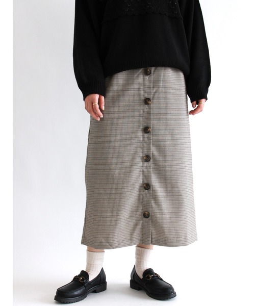 フロントの丸ボタンをアクセントにレトロ感たっぷりなタイトスカート。 ハイウエストな細すぎないシルエットでスタイルアップにも効果的です。 バックの裾にはスリットをあしらい、動きやすさも◎。 いつもとは違うクラシカルな雰囲気に仕上げたい時にもおススメなアイテムです。 手洗い可、石油系ドライクリーニング。