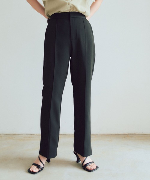 センターのピンタックが細見せ効果のあるセミフレアパンツ。 ・裾スリットがコーディネートに抜け感をプラス。 ・セミフレアのシルエットで美脚効果も。 ・ベーシックカラーに加えて、シーズンムード高まるアクセントカラーでご用意しました。 ・同素材のジャケットと合わせてセットアップでの着用もおすすめ。 ※当商品は機械による生産の過程上、どうしても"生地を織る際の糸の継ぎ目"や多少の"ほつれ"、他繊維の"混紡"、また、形やサイズや柄に多少の"誤差"が生じる場合がございます。 ※サイズは、実寸サイズを測っているため多少誤差がでる場合があります。製造工程の関係上、各採寸箇所実寸(平置き)より【約-3cm~+3cm】程度は誤差の許容範囲とさせて頂いておりますので、予めご了承くださいませ。 ※メーカーより密封状態で入庫し、検品時に再度袋詰めを行っておりますが、素材により染料等の臭いが強い場合がございます。 ※発送上の状態によって商品がシワになる場合がございます。 ※商品により色落ち・色移りがある場合がございますので、品質表示をご確認の上、お取り扱いにご注意くださいませ。 【生地】さらっとした薄手生地 【伸縮性】なし 【透け感】淡色に多少あり 【裏地】なし