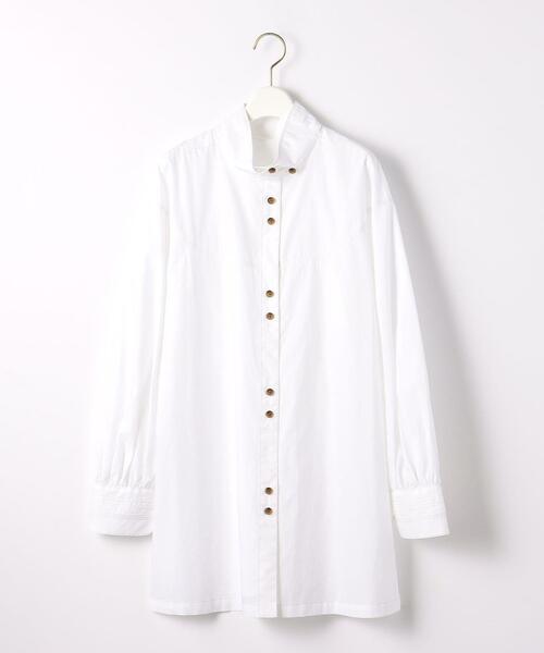 オーバーサイズのチュニックシャツ。■デザインスタンドカラーデイテール、ステッチワーク、ギャザーやタック使いなどヴィンテージライクなディテールがポイント。■素材オイルコーティングを施しタイプライターの様なハリと独特の反発感がある細番手のブロード素材。■コーディネートチュニック丈のシルエットを活かしてロングブーツなどと合わせるバランスがおすすめ。中にタートルなどを合わせてシャツ羽織としてもメンズライクなバランスで着ていただけます。============================裏地:なし透け感:ホワイト あり生地の伸び:なし光沢感:なしケア方法:手洗い可============================<BRACTMENT(ブラクトメント)>グリーンレーベル リラクシングから生まれた『BRACTMENT(ブラクトメント)』。2021 Autumn & Winter のコンセプトは「Play GENTLE」自分に心地よくゆるやかな気持ちでファッションを楽しんでみるオーセンティックなアイテムや、サイジングでメンズライクを取り入れたり新しいテイスト、アイテム、カラーに挑戦してみる今のカルチャーもMIXしてスタイルを作る自分のために 気分を上げていく服【注意事項】※商品を使用前に、タグ等に記載されている「取り扱い上の注意書き」、「洗濯表示」を必ずご確認ください。※商品画像は、光の当たり具合やパソコンなどの閲覧環境により、実際の色味と異なって見える場合がございます。予めご了承ください。※商品の色味の目安は、商品単体の画像をご参照ください。店舗へお問い合わせの際は、全国のgreen label relaxing各店舗まで下記の品名/品番をお申し付け下さい。品名:BM タイプライタースタンドネックSH 品番:36111991792
