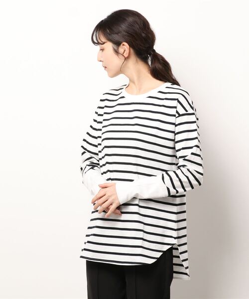 ■2021 AUTUMN & WINTER ITEM■ 大人気袖リブロンT。ボーダー柄も登場! シンプルなデザインに際立つ、袖の切り替えデザインがおしゃれな1着。 大人らしいベーシックなカラーリングで仕上げたボーダー柄がデイリーに着回せるデザインになっています。 袖部分は長めのリブに切り替えている為、女性らしくスッキリとした印象に。 裾のラウンドカットは、少し後ろ下がりのシルエットにすることで気になるヒップ周りもしっかりカバーしてくれます。 ボトムを選ばないデザインで、汎用性が高く1枚着としてはもちろん、ニットの裾や袖からくしゅっと出してレイヤードスタイルも楽しめますよ! - POINT - ・大人気の袖リブロンT ・袖部分は長めのリブ ・ボトムを選ばないデザイン◎ -------------------------------- 洗濯:手洗い可能 透け感: なし 裏地: なし 伸縮性: あり 光沢感: なし -------------------------------- 【 ♡ をクリックでお得な情報をお知らせいたします 】 〈 商品のお気に入り登録 〉 お気に入りアイテムのお値下げ・再入荷・在庫ラスト1点など通知を受けることができます。 〈 ブランドのお気に入り登録 〉 DOUDOUの新商品や再入荷、セール、クーポン配布などお得な情報を受けることができます。 -------------------------------------- ※ 生産の都合上、お届け時期が前後する場合がございます。 ※ 掲載画像の商品の色味は、 撮影場所や光の当たり具合などにより色味が異なって見える場合がございます。 また、お客様のお使いのPC・スマートフォン等のモニター環境などにより色味が異なって見える場合がございます。予めご了承の上ご注文ください。 ※ 着用、お取り扱いの際は、商品についている品質表示とアテンションタグを必ずご確認下さい。