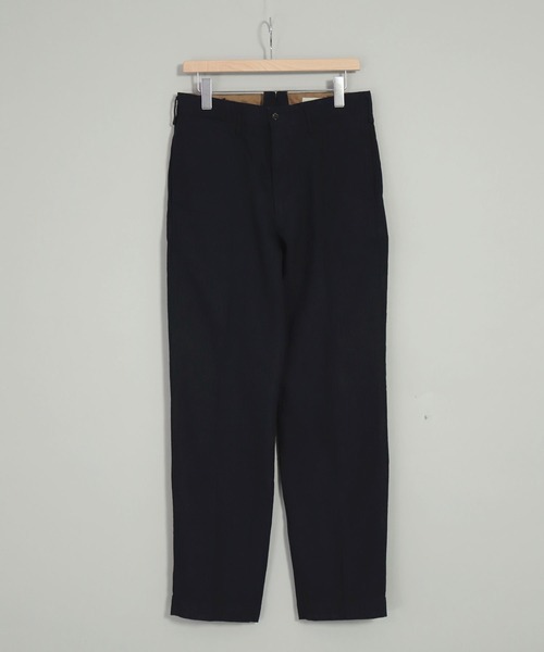 秋のはじまりを象徴するかのような奥行きあるインディゴが魅力!<素材>ヴィンテージ感のあるグリーンインディゴを経糸に使用し、緯糸にブラック糸を打ち込んだ濃紺のインディゴ素材を開発。グリーンインディゴをヘリンボーン織りに仕立てることで唯一無二の表情と無骨で力強い印象を与えてくれます。<デザイン>ウエストベルトの挟み込みや玉縁ポケット、バックルバック(尾錠)を施すなど妥協のない本格的なワークディテールを取り入れています。股上を深く、ヒップにダーツにをとり丸みを持たせて裾に向かって緩やかにテーパードを効かせています。迫力はありながらも太すぎないバランス感の良いシルエットになっています。昔あったワークウエアとは少し異なるテイストでフォルムや質感を大切にしながら日常でベターに扱えるシリーズに仕立てています。[OMNIGOD / オムニゴッド] “人が着る事”その当たり前とも思える考えに常に向き合いながら、素材や加工を駆使し、着心地や風合いの良いモノづくりを行う。人が求める本当の服、そんなモノづくりを出来ればとオムニゴッドは考えています。model1:H180 着用サイズ:2(M)