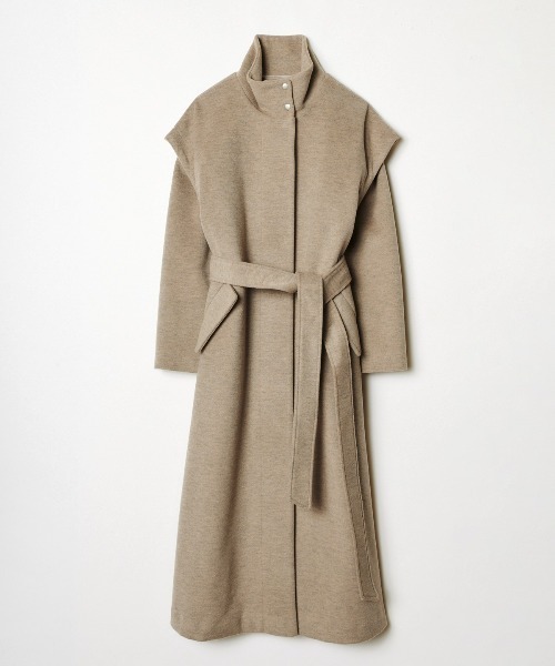 ノーカラーのショートジャケットとスタンドカラーのロングベストが2枚セットになった3wayコート ベストのバックデザインは同系色のジョーゼット生地でプリーツを施し、ふんわりと動きのあるデザインに仕上げました。 ショート丈のジャケットとロング丈のベストをレイヤードさせたデザインはほかにないデザインでアンニュイな印象に◎ 同色でまとめることでシンプルにお洒落な雰囲気を演出します。 【styling】 セットで着用することでトレンド感のあるショルダーラインのレイヤードコートに◎ ショート丈ジャケットとロング丈ベストの組み合わせはどちらを上に羽織っても着用できるデザインで気分に合わせて◎ ショートジャケット、ロングベストは別々でも着用可能で着回しの幅が広がるアイテムです。 -------------------------- 透け感:なし 裏地:あり 伸縮性:なし 生地の厚さ:やや厚手 --------------------------- M:(02):[ショートジャケット]着丈39cm 身幅49.5cm 袖丈68.5cm [バックプリーツベスト]着丈124cm 身幅56.5cm 袖丈22.5cm S:(01):[ショートジャケット]着丈38.5cm 身幅48cm 袖丈67.5cm [バックプリーツベスト]着丈119cm 身幅55cm 袖丈22cm