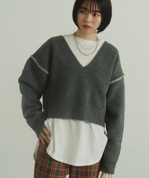 2021 Autumn & Winter item 深いVネックと、ボートネックの前後2wayで使えるショート丈のニットプルオーバー。 ゆるっとしたシルエットと、配色ブランケットステッチがポイント。 ≪STYLING≫ ショート丈なので、ハイウエストボトムに合わせるとスタイルアップ見えコーデが完成。 インナーにはタートルネックやシャツ、カジュアルなロンTを合わせても決まる着回し力の高いアイテム。 シャツテールのインナーを裾から出したゆるっとカジュアルコーデもおすすめです。 ≪DETAIL≫ 暖かくしっかりと厚みがありながら、直接肌に当たってもチクチクしない素材感。 ダークグレー、ライトベージュの使いやすいベーシックカラーに、 アームホールと身頃の中心に入った配色ブランケットステッチがアクセントになっています。 ※店頭及び屋外での撮影画像は、光の当たり具合で色味が違って見える場合があります。 商品の色味は、スタジオ撮影の画像をご参照ください。 ※撮影場所やお使いのモニター環境により若干お色味が異なる場合がございます。 ----------------------------- AULIは【155cm以下の小柄な女性】のためのファッションブランドです。 155cm以下のトレンドに敏感でハンサムな女性へ。 petitハンサム 「小さい≠カワイイ、小さい=ハンサム」 身長が小さく見えずに、特別な日にも自分らしく 凛とハンサムに着こなせるスタイルを提供します。 ----------------------------- ----------------------------- ▼商品のお気に入り登録 気になるアイテムはハートマークをクリック! 値下げ・再入荷・在庫1点などの通知を受け取ることができます。 ▼ショップ/ブランドのお気に入り登録 新作アイテムの入荷や人気アイテムの再入荷、タイムセールやクーポンなど、いち早くショップ/ブランドのお得な情報を受け取ることができます。 -----------------------------